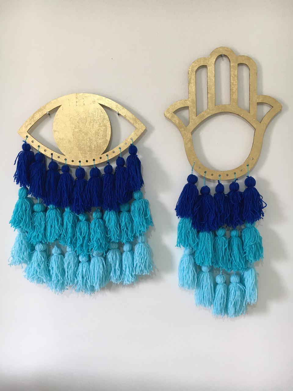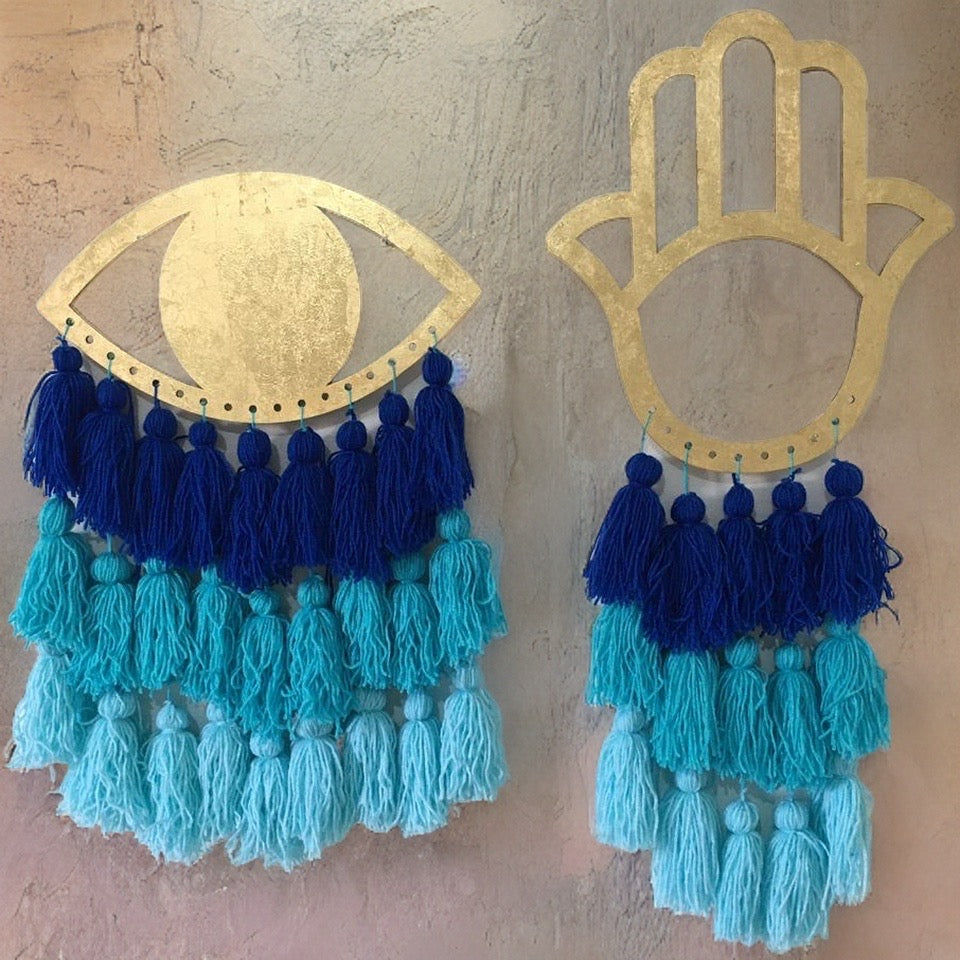 Gold Leaf Eye & Fatima Hand Wall Decor Set of Two