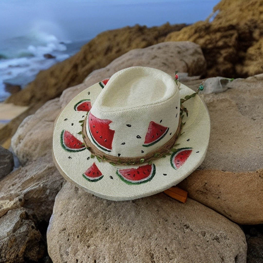 Watermelons Hand Painted Summer Hat